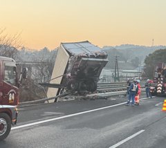 ⚠️【動画あり】早朝の東名に衝撃!トラックが宙に浮くような形で転落した現場の生々しい映像はこちら