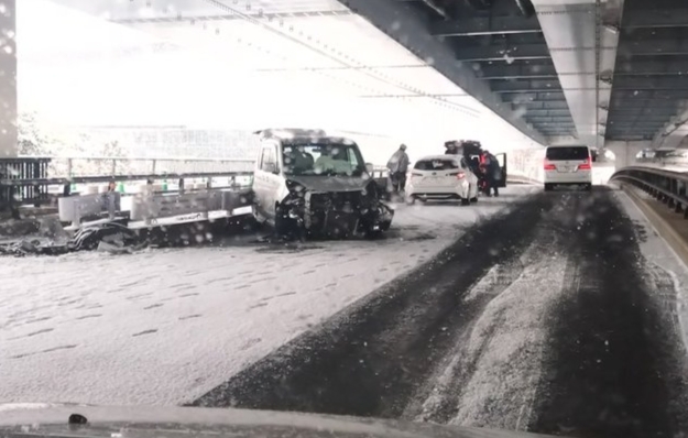 🎬【現地の映像】有明アリーナ付近の惨状…凍りついた道路で衝突を繰り返す車列と動けないバス