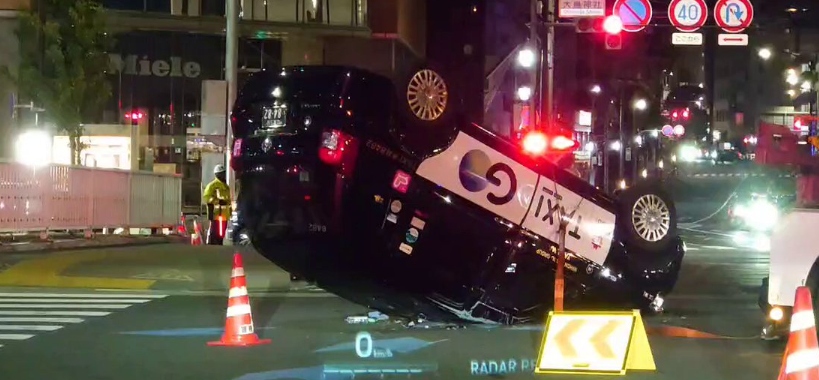 日交さんのタクシーが真っ逆さまになってた中の人大丈夫かな
