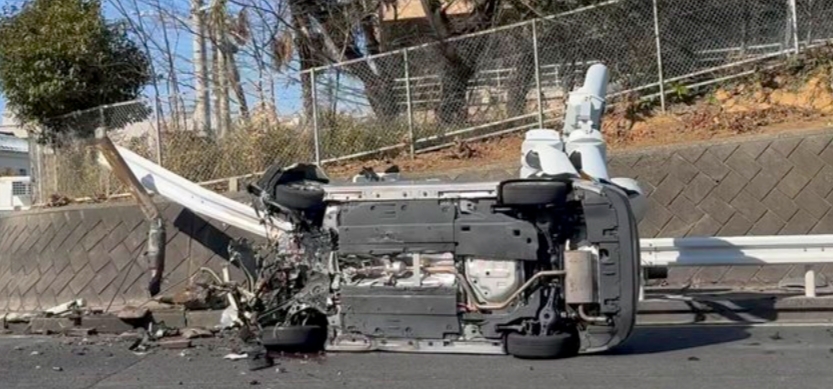画像見たけどガードレールに乗り上げてひっくり返ってるな