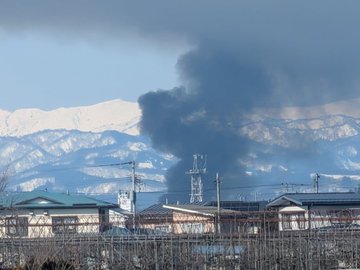 TikTokに上がってる「寒河江火災」動画 煙の柱が真っ直ぐ上がってる